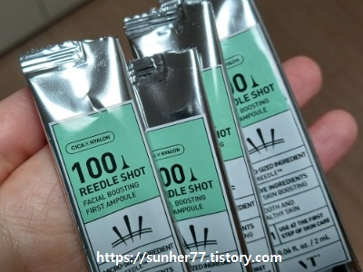 VT코스메틱에서 출시한 미세한 침이 함유되어 있는 앰플입니다. 모공보다 크기가 작은 미세침이 피부 속으로 침투하면서 유효 성분의 흡수를 높인다고 합니다. 리들샷, 니들샷이라고 하는데 영어로는 Needle Shot 바늘주사, 미세침을 의미합니다.