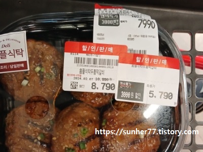 너무 일찍가면 30% 정도밖에 안 되지만 나중에는 50%까지 할인 스티커가 붙고, 60%까지 할인되어 구입할 수 있습니다. 지난번에 설 명절 전을 60% 할인된 가격에 구입해서 맛있게 먹었습니다.