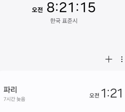 또는 스마트폰 어플 시계에서 세계시각 - 도시추가 - 프랑스 파리를 추가하여 시차를 확인하셔도 됩니다.